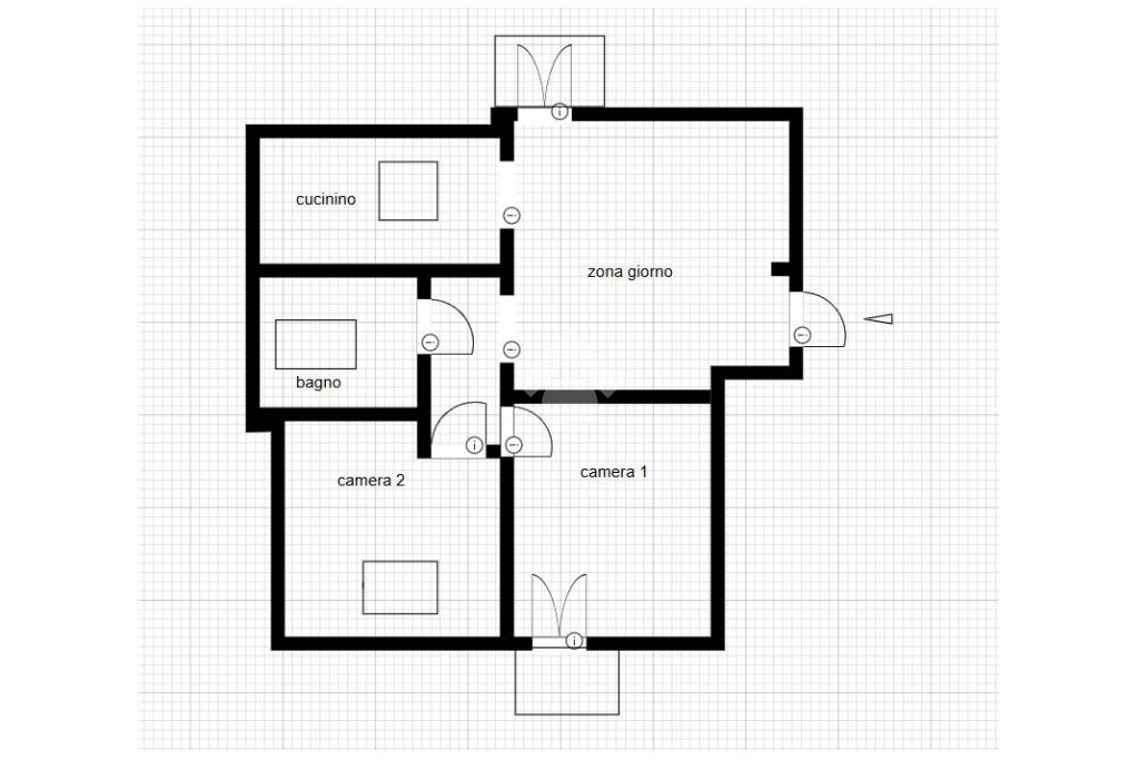 composto da ingresso in grande salone con finestra su balconcino, affaccio su cucinino, corridoio con accesso alle due camere da letto e bagno dotato di vasca e finestra.